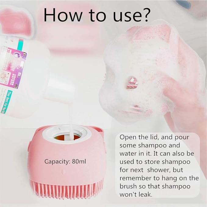 - 【Multi-functional Pet Bath&Massage Brush】With shampoo dispensing design, the Pet Brush not only can provide a quick and thorough washing of your pets but also massage the skin to improve the blood circulation, giving your dog a very comfortable bath.