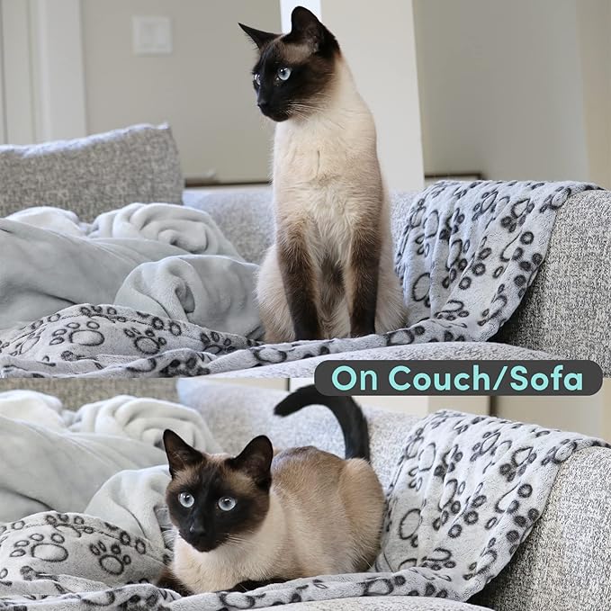- PREMIUM MATERIAL FOR PETS ONLY: Super Soft & Warm comfy fleece for your pets, exclusive cute paw prints design on the top, lovely solid gray color on the back, no fear of peeing, bitting, chewing and tearing. Your dog will love this dog products!