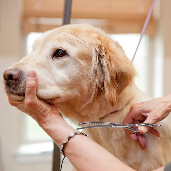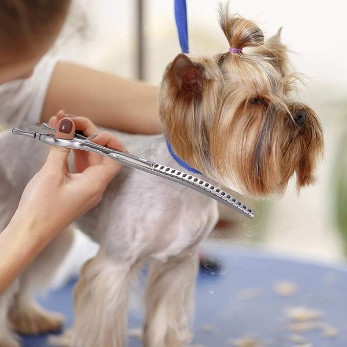 - CONVENIENCE - Light weight and smooth blades make the dog grooming shear Safe and Easy for anybody to handle the shears and cut hair. Screw adjustable to handle with various fur thickness. The grooming scissor for dogs is an essential tool for pet beauty modeling.