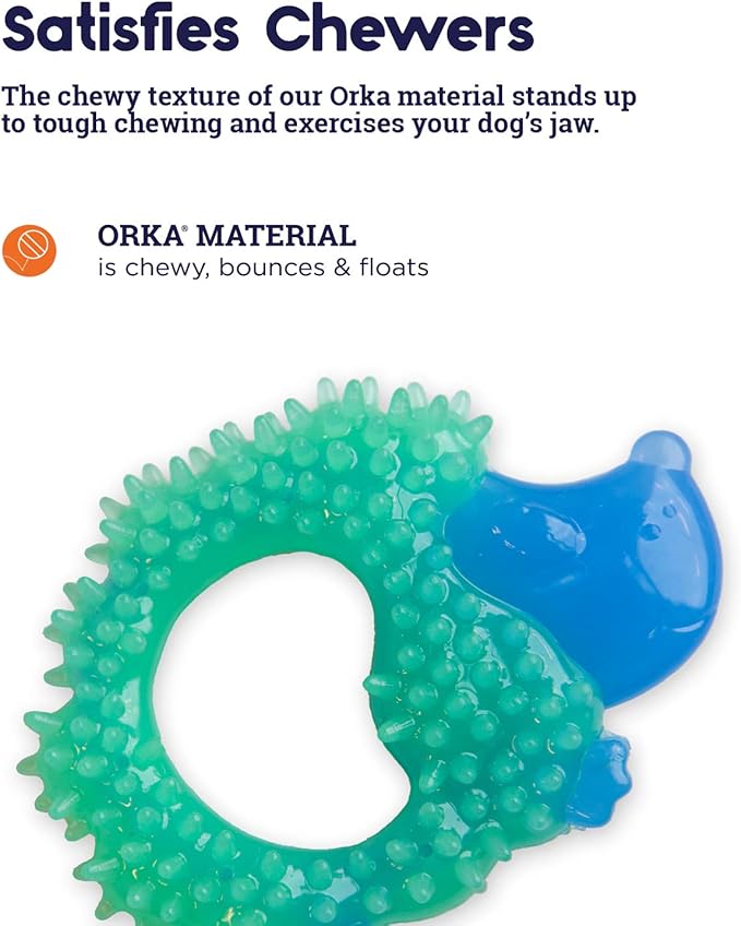 - Textures of this hedgehog chew toy help massage gums and add interest to keep your dog busy