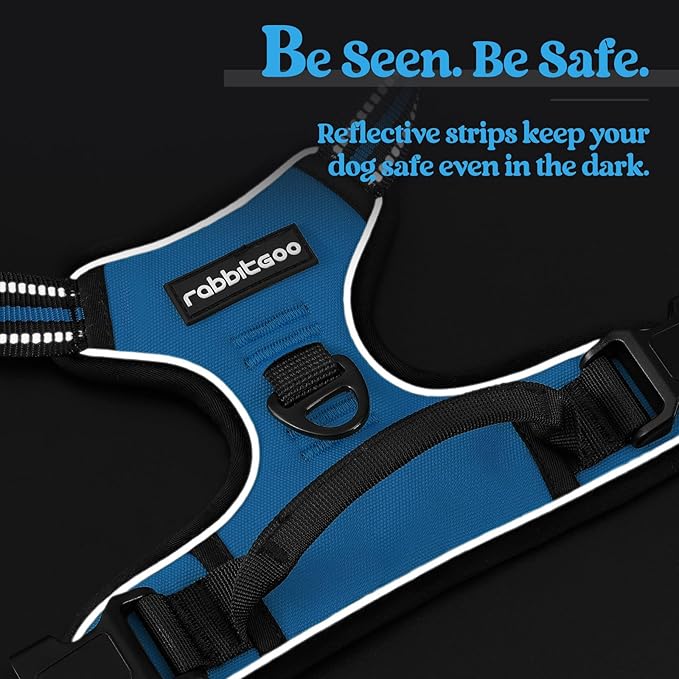 rabbitgoo Dog Harness No Pull with 2 Leash Clips, Adjustable Soft Padded, Reflective Oxford No Choke Pet Vest with Easy Control Handle for Large Dogs, Blue, L