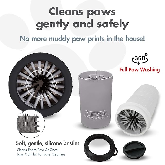 - Gentle silicone bristles remove dirt and mud from your dog's paws- keeping the mess in the MudBuster and not in your house or car
