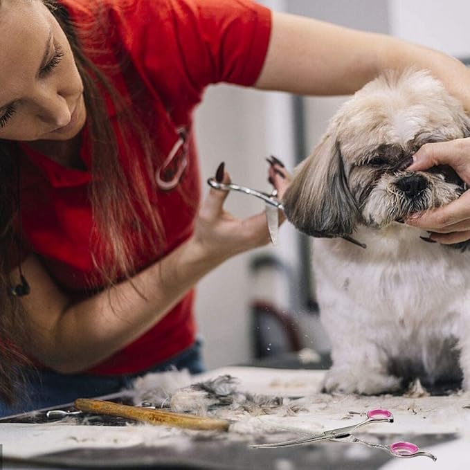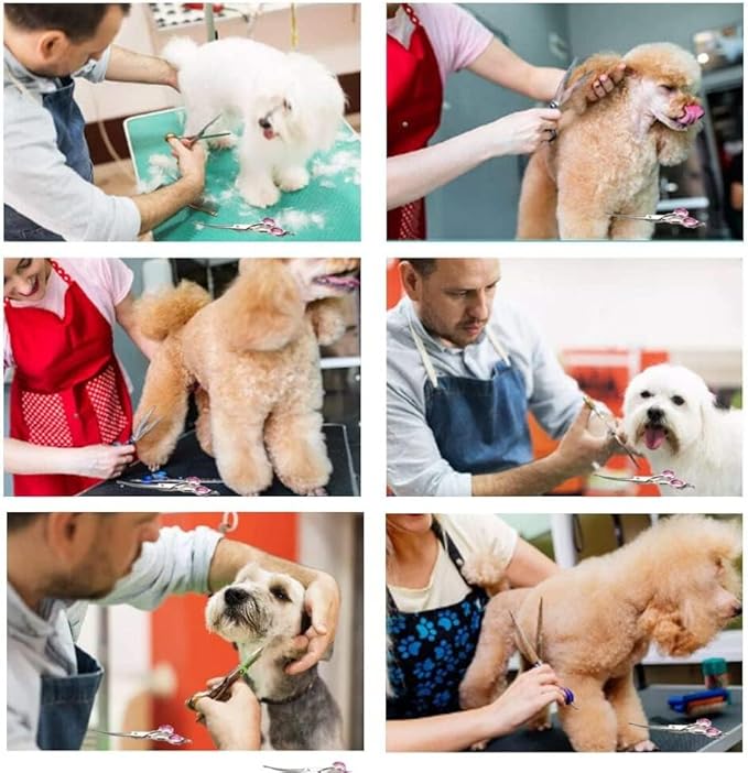 - Long scissors: Our dog grooming scissor is 7.5 inches long, Sharp Scissors Blades,light weight and the long blade can cut a lot of animal hair at once, to make the trimming effect more natural and beautiful, while also saving your time and energy.