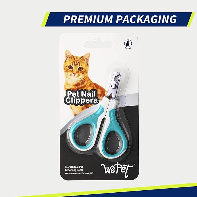 - [Curved Tips and Round Edge]: Length 3.8" x Width 2.6" Inch. Elaborately designed with its tips bending 20º upwards, WePet nail clipper provides a wider view to avoid accidental injuries. The blades feature round edges to fit your pet’s nails’ shape better. Suitable for all cats and very small breed dogs, such as extra small Chihuahuas and poodles; not fit for dogs over 10lbs.