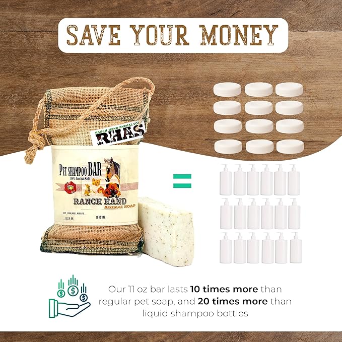 - 💰 SAVE YOUR MONEY: An 11 oz bar lasts 10 times longer than regular pet soap, it offers double the washes of other bars and 20 times more than liquid shampoo bottles, while reducing plastic waste. Includes a Scrub Brush and Exfoliating Washcloth.