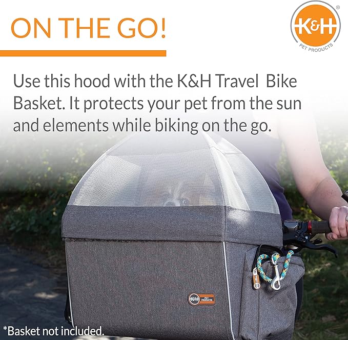 K&H Pet Products Travel Bike Basket Hood for Pets Classy Gray Large 12.5 X 16 X 13 Inches