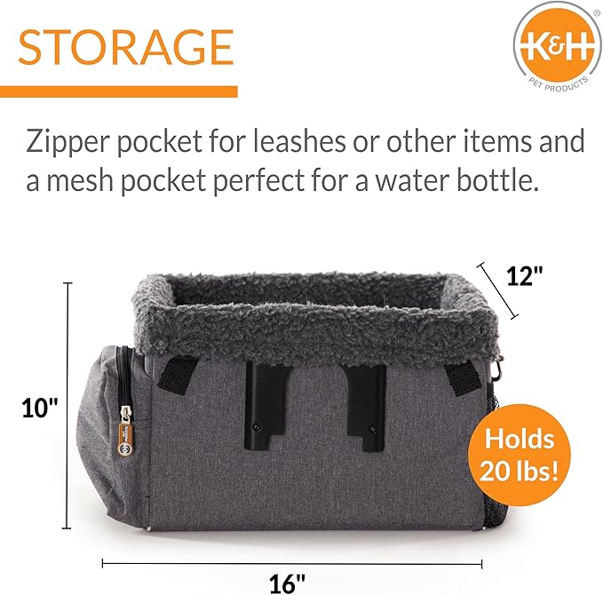 - STORAGE: Zipper pocket for storing leashes and treats, mesh pocket for holding water bottles.