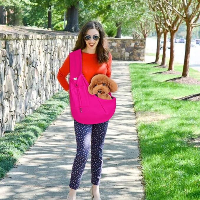 FDJASGY Small Pet Sling Carrier-Hands Free Reversible Pet Papoose Bag Tote Bag with a Pocket Safety Belt Dog Cat for Outdoor Travel Rose Red