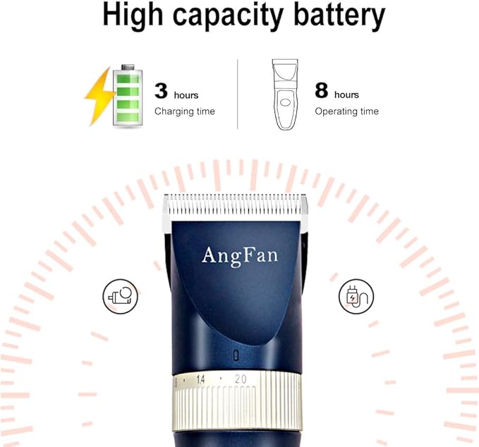 - 【Long Time Power Supply】 The pet clipper built-in 2200mAh rechargeable lithium-ion battery, it can 8 hours of cordless operating after 3 hours fully charged. can keep pet hair clipper running continuously, no more worries about power off when working.