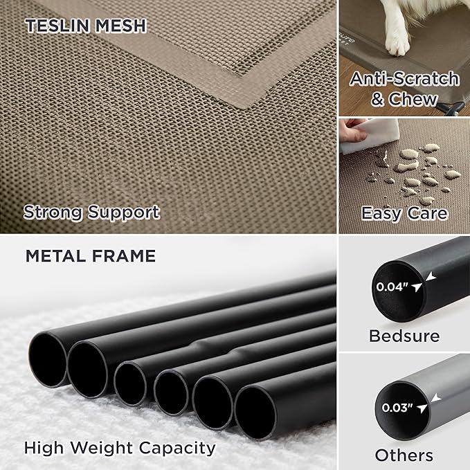 - Strong & Durable: Heavy-duty Teslin mesh holds up against scratching and chewing, providing excellent support and even pressure distribution to reduce joint and muscle pain. The strength-tested lightweight metal frame supports dogs up to 75 lbs.