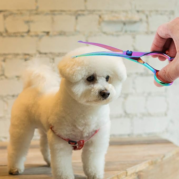 Mogoko Cat Dog Curved Scissors with Safe Round Tip, Stainless Steel Pet Grooming Shears