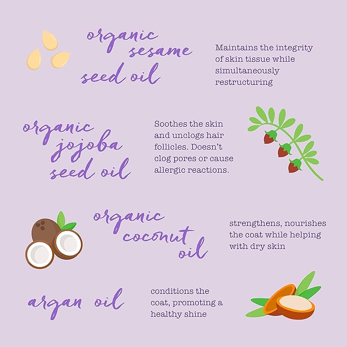 - MADE WITH ORGANIC INGREDIENTS: Our pet conditioner is pet pH balanced and made with clean, certified organic ingredients including Coconut Oil, Jojoba Seed Oil, Aloe Vera, Sesame Seed Oil and Argan Oil.