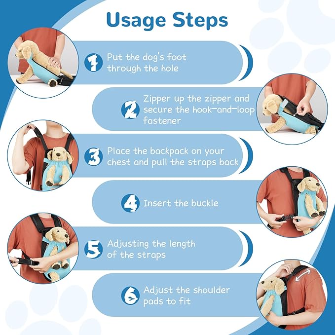 - 3 Sizes Available for Your Beloved Pet: The suggested weight for the dog front backpack is for reference only. If your dog's body length requires size S but the girth requires size M, please choose size M. Additionally, leave at least an extra inch to ensure your pet's comfort.