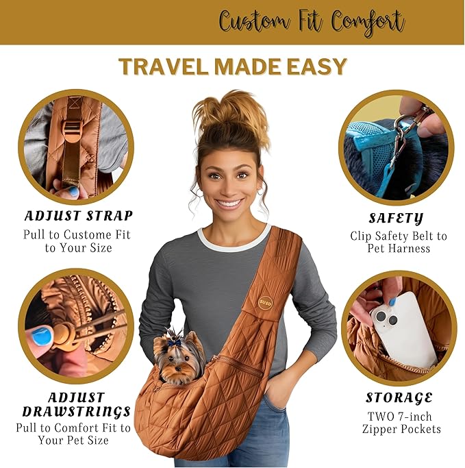 - Spacious & Secure Storage – Carry your phone, keys, and pet essentials with ease! Two zippered pockets ensure your belongings stay safe and secure, adding convenience to your daily commutes. SUSU’s puppy sling carrier is the ultimate blend of fashion and functionality for pet parents
