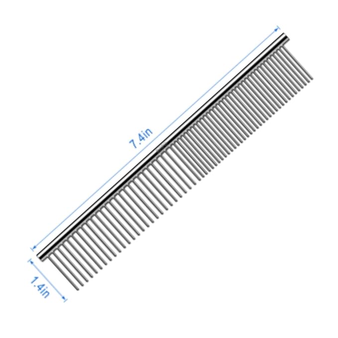 - PREMIUM MATERIAL: The dog grooming comb is made of premium stainless steel, this steel comb teeth is smooth and durable, corrosion resistant and will not fade, also benefit for avoiding static electricity when used.