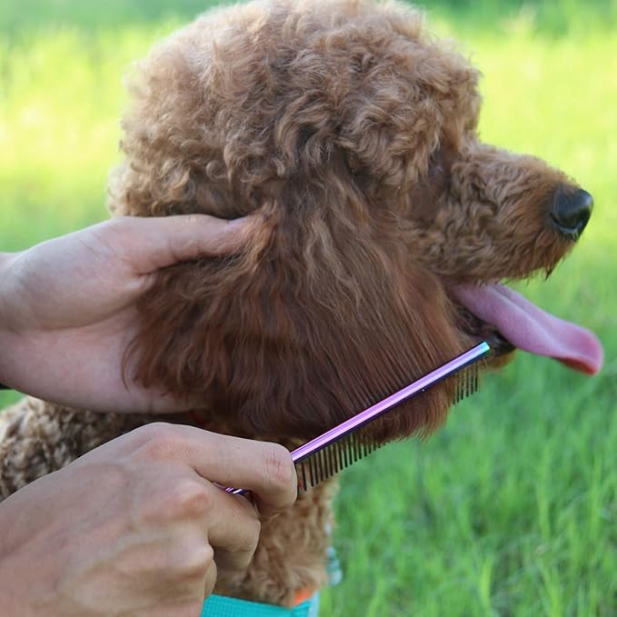 - PREMIUM MATERIAL: The dog grooming comb is made of premium stainless steel, this steel comb teeth is smooth and durable, corrosion resistant and will not fade, also benefit for avoiding static electricity when used.