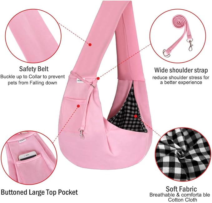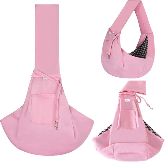FDJASGY Small Pet Sling Carrier-Hands Free Reversible Pet Papoose Bag Tote Bag with a Pocket Safety Belt Dog Cat for Outdoor Travel Pink