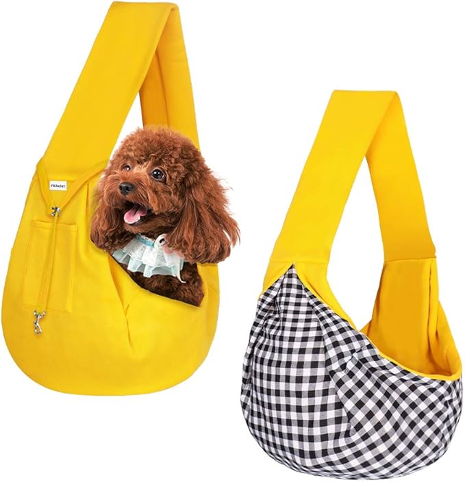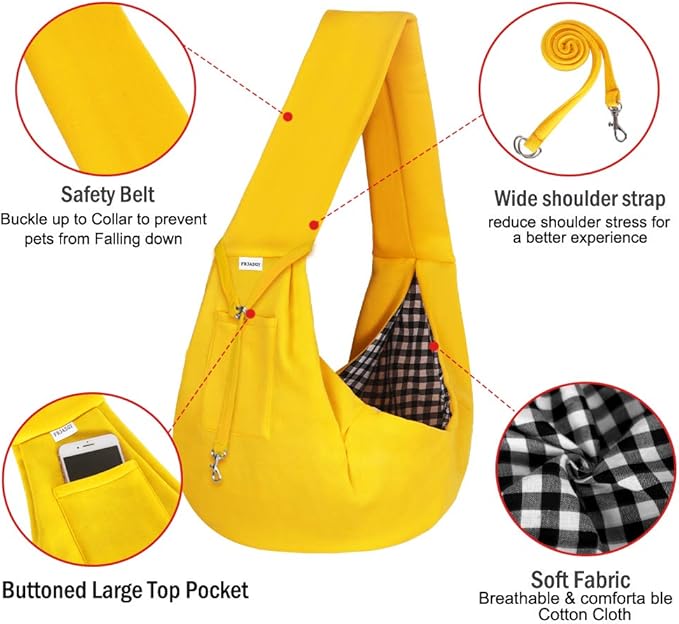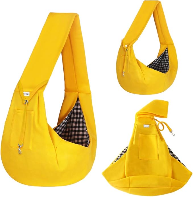 FDJASGY Small Pet Sling Carrier-Hands Free Reversible Pet Papoose Bag Tote Bag with a Pocket Safety Belt Dog Cat for Outdoor Travel Lemon Yellow