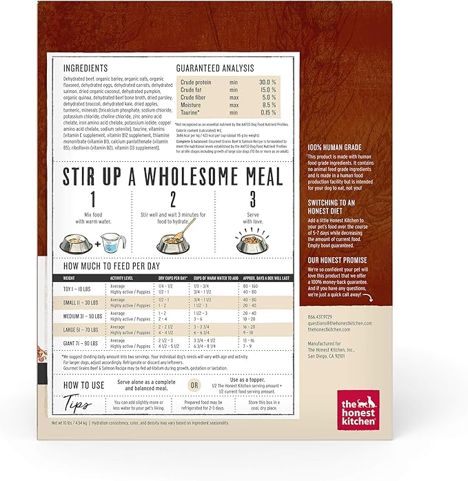 The Honest Kitchen Human Grade Dehydrated Gourmet Grains Dog Food - Beef & Salmon, 10 Pound Box