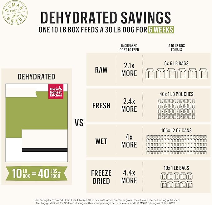 - MAKES 16 LBS OF FOOD: Just add warm water for a wholesome & delicious meal that rehydrates to 4x its weight. A 4 LB box makes 16 LBs of fresh food! Serve alone as a complete easy homemade meal, or use as a topper to dry food.
