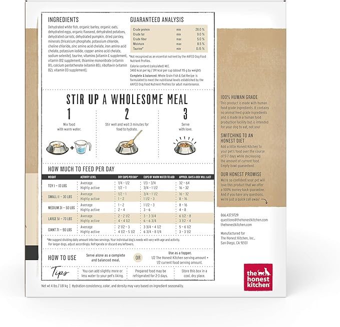 The Honest Kitchen Dehydrated Whole Grain Fish & Oats Dog Food, 4 lb Box, 4.00 Pound (Pack of 1)