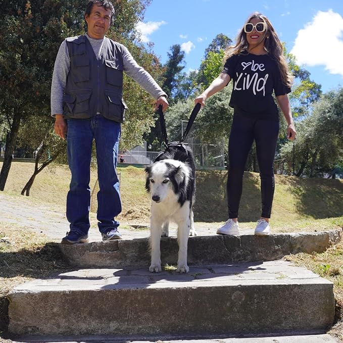 - The adjustable length straps accommodate humans of all sizes. No more bending over and straining your back to help your dog!
