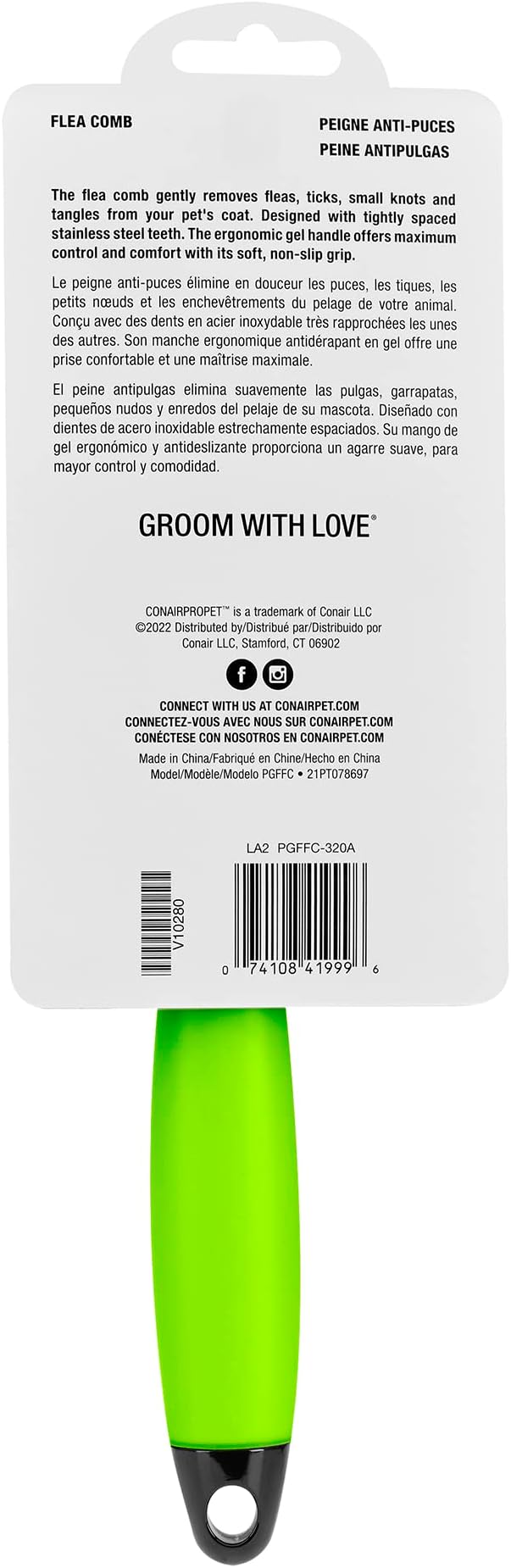 CONAIRPROPET Pet brush for Flea and Tick Removal, 1/2" Stainless Steel Comb with Memory Grip Handle