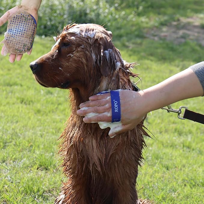 Dog bath brush, ROPO rubber massage pet shampoo brush, used for pet grooming, removing shedding fur, combing tangles and dead fur, suitable for pet dogs and cats (red)