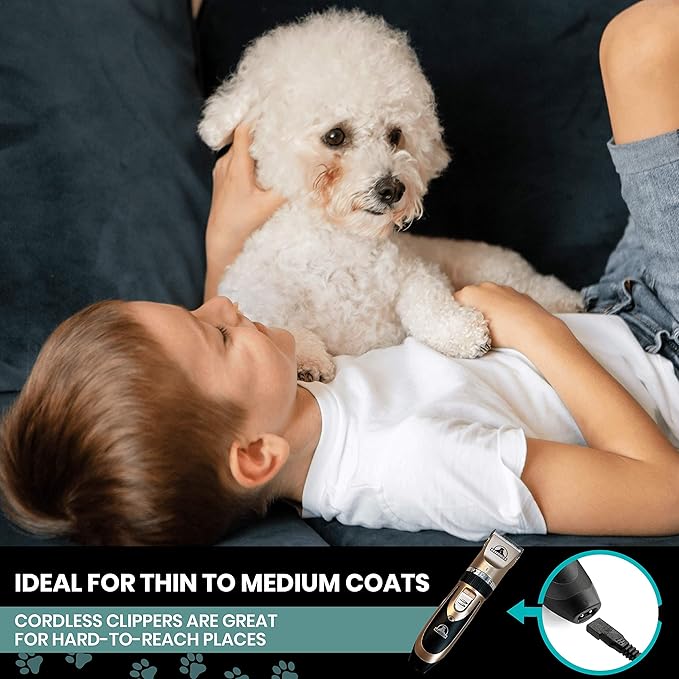 - Rechargeable & Cordless - Thanks to an ergonomic design & rechargeable battery, grooming with the Pet Union grooming kit for small and large dogs is a breeze for even the hardest-to-reach areas.