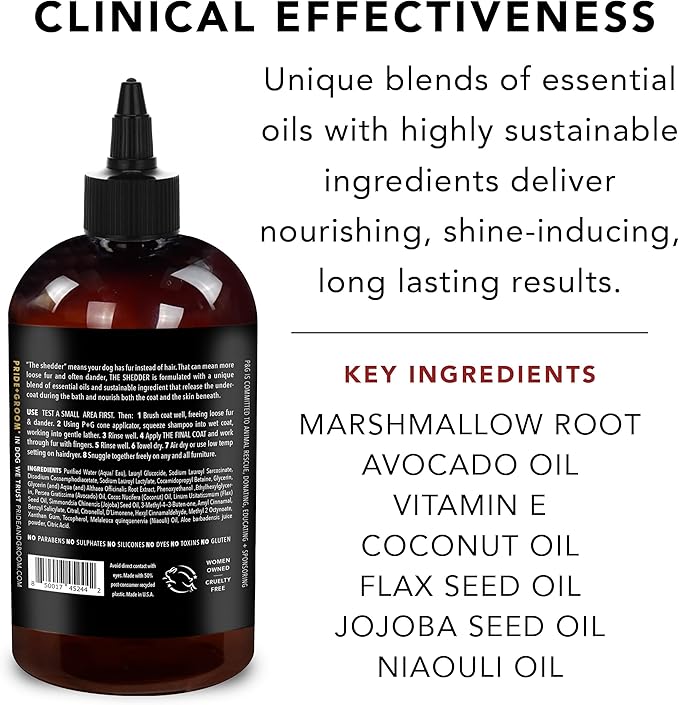 - THE SHEDDER SHAMPOO: Formulated for dogs with fur instead of hair, THE SHEDDER shampoo is super moisturizing for the coat and the skin beneath.
