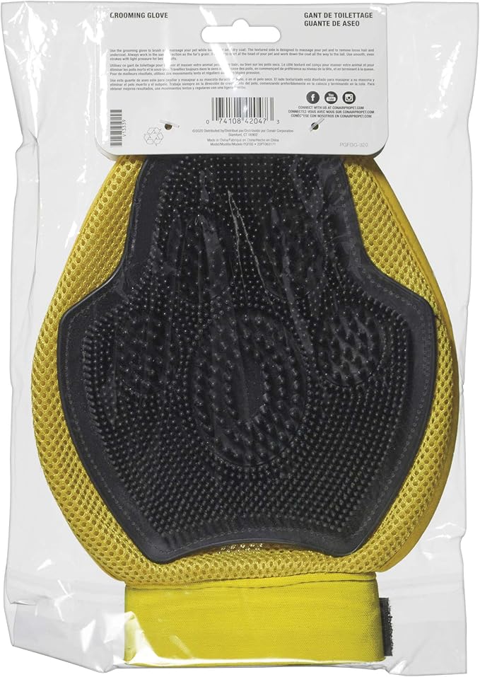 - CONAIRPROPET cat and dog grooming gloves are effective at-home cat and dog grooming supplies for rubbing, scrubbing or massaging cats and dogs hair while providing the ultimate relaxation. The cat and dog grooming glove is perfect for use while bathing your pet or brushing on dry fur