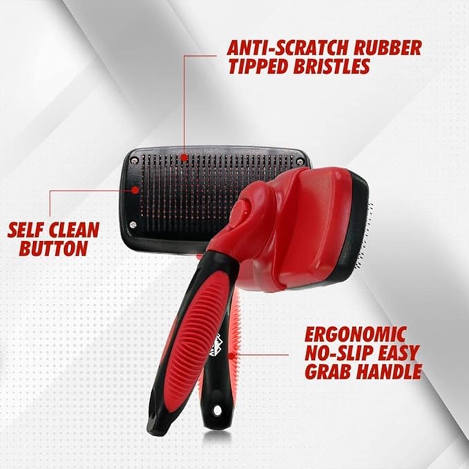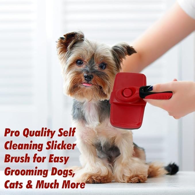 Self Cleaning Slicker Brush – Dog Slicker Brush Removes Loose Undercoat, Mats & Tangled Hair – Pet Slicker Brush for Small, Medium & Large Cats & Dogs with All Hair Types – with Retractable Bristles