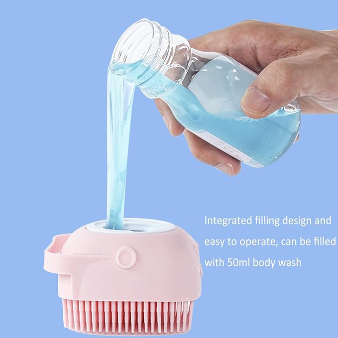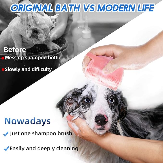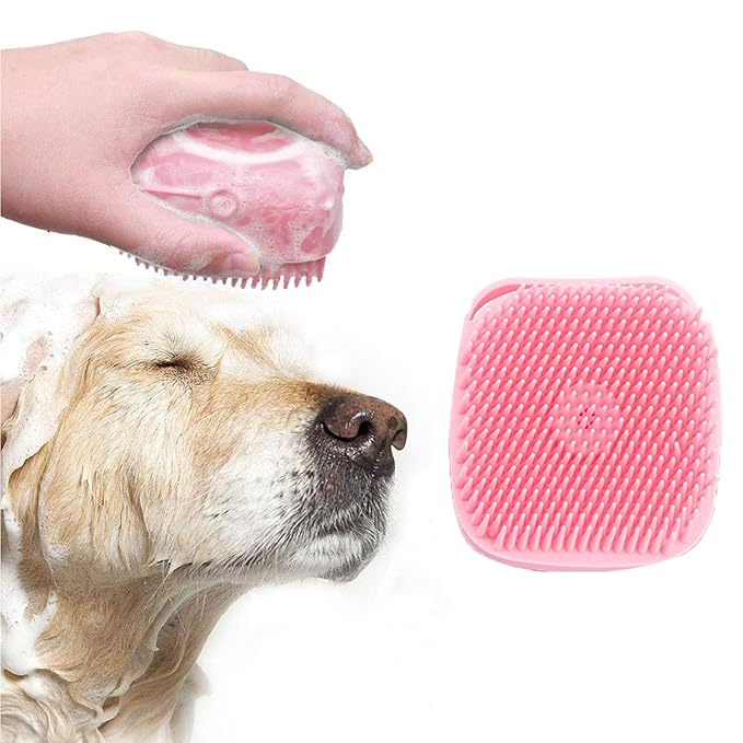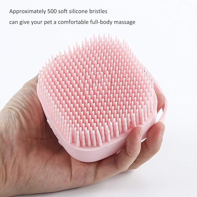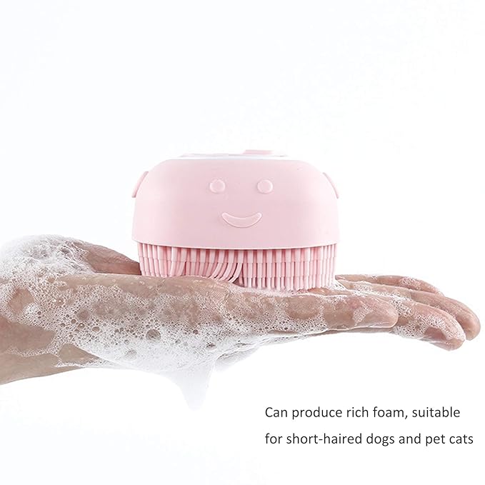 Dog Cat Bath Brush, Silicone Massage Brush with Shampoo Dispenser, for Short Haired Dogs Cats Shower