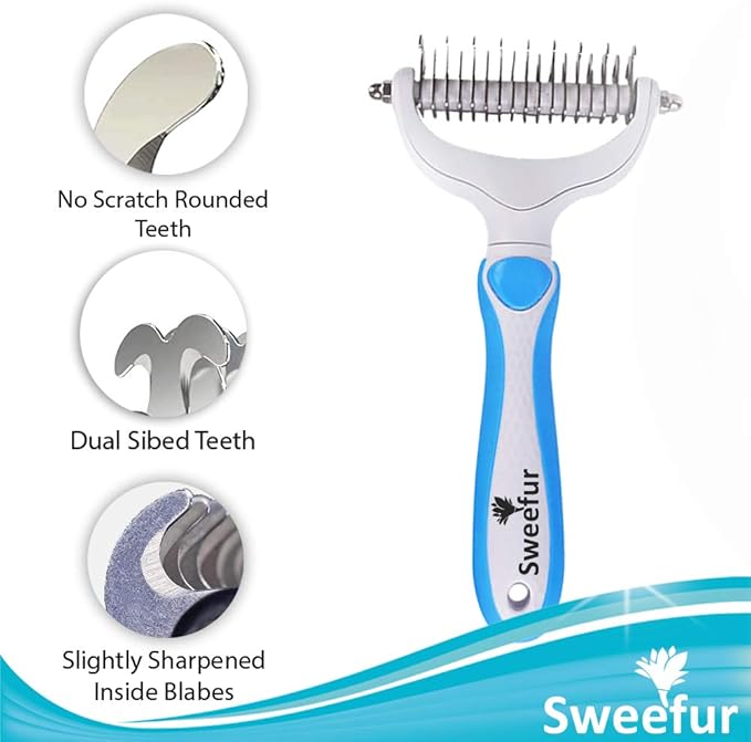 - EFFECTIVE - The Sweefur undercoat rake tool is designed to remove all dead hair and tangles from your cat or dog. The 2-sided rake deshades your pet- Use it once a week for a few minutes and keep your furniture and floors clear of pet hair for the rest of the week.