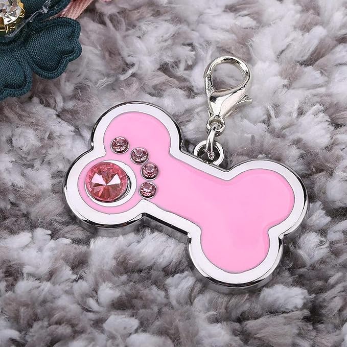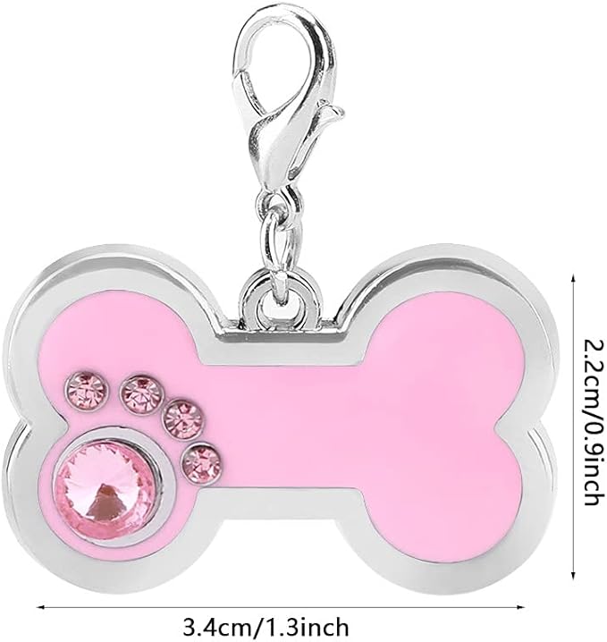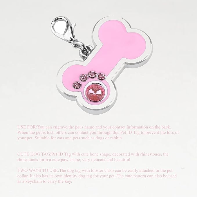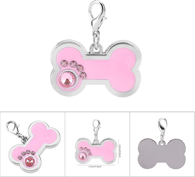 - CUTE DOG TAG:Pet ID Tag with cute bone shape, decorated with rhinestones, the rhinestones form a cute shape, very delicate and beautiful