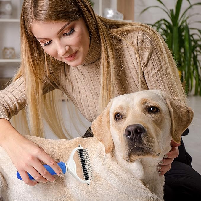 - DUAL UNDERCOAT RAKE: Features two sides with wider and more narrowly spaced teeth & is designed to safely and easily remove loose hair and undercoat.
