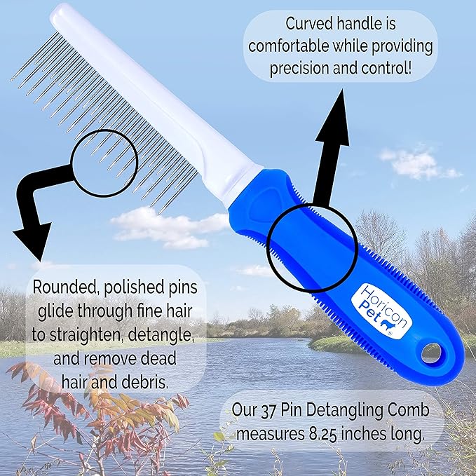 - DETANGLING COMB: 37 Dual length pins with rounded tips removes leftover hair and helps reduce mats and tangles with regular use!