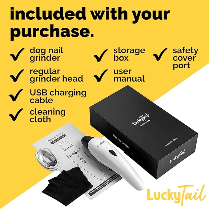 LuckyTail Pet Nail Grinder for Dogs and Cats - Super Quiet and Low Vibration Electric Dog Nail Grinder with 2 LED Lights - USB Rechargeable and Cordless - 2 Speeds - Small to Large Pets