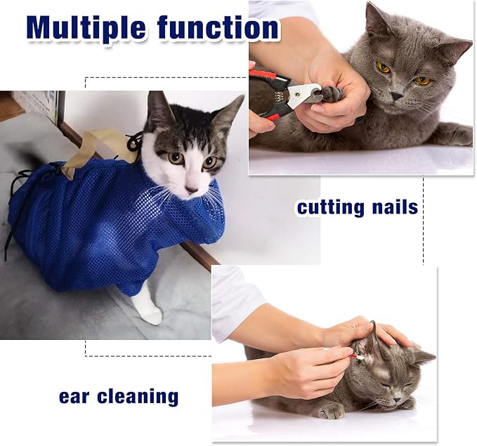 - Practical use: the breathable mesh pet muzzle can prevent you from being bitten while washing your pet, and stop your cats from creating some inopportune sounds in some special days; While the cat grooming washer mesh bag can help you avoid scratches from your cats, making your pet bathing process easier and safe
