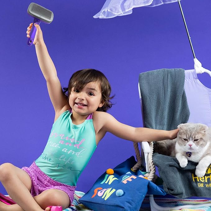 Hertzko Self Cleaning Slicker Brush - Dog & Cat Brush, Dog Brush for Shedding, Cat & Dog Grooming for Pets, Grooming Brushes for Long Short Haired Dogs Cats, Deshedding Brush, Rake, Comb