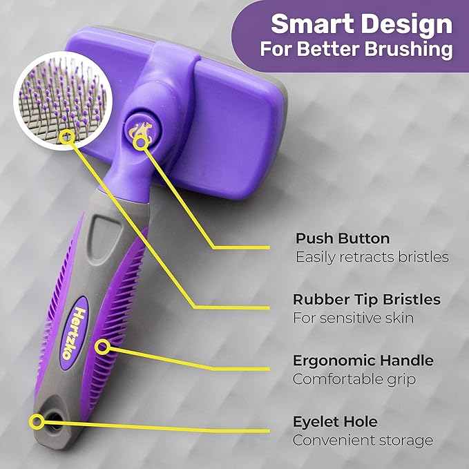 Hertzko Self-Cleaning Slicker Brush for Deshedding Long and Short-Haired Pets - Small Size Grooming Rake and Comb for Dogs and Cats