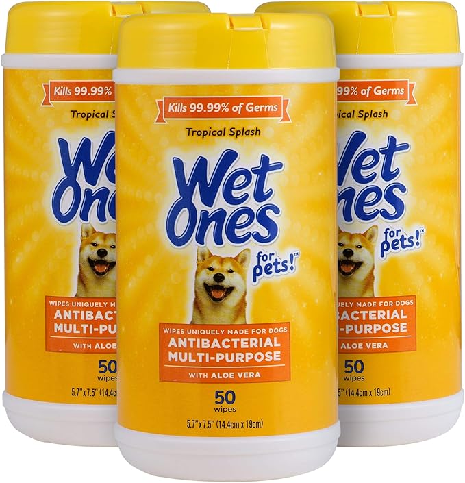 Wet Ones for Pets Multi-Purpose Dog Wipes with Aloe Vera, 50 Count - 3 Pack | Dog Wipes for All Dogs in Tropical Splash, Wipes for Paws & All Purpose