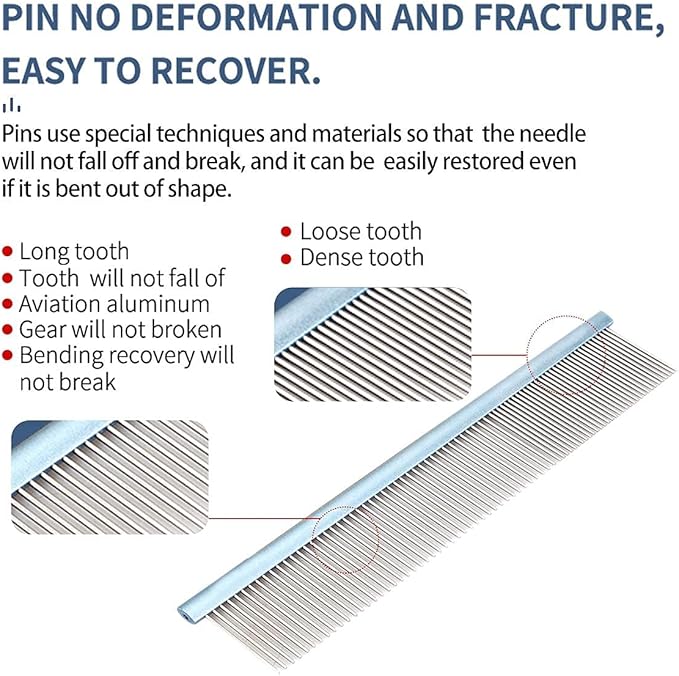 - 【Pin No Deformation And Fractue,Easy To Recover.】 >>Our dog and cats comb Pins use special techniques and materials so that the needle will not fall off and break, and it can be easily restored even if it is bent out of shape.It's a professional comb and deshedding comb for dogs and cats.