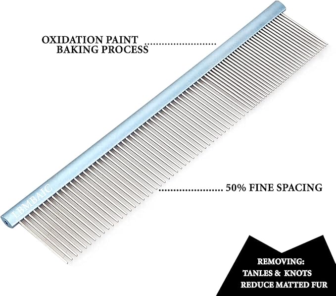 - 【Cambered Handle For More Comfort and Easier Hold On.】>>Our grooming comb for dogs and cats two ends of the handle are polished without sharp edges.This dog grooming comb It's safer and more comfortable to use for groomer.Handle surface through matte process flow, anti - slip.