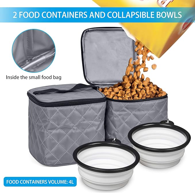 - HIGH QUALITY-The pet travel set is made of heavy-duty polyester material, filled with EPE foam,excellent tear resistance and wear resistance make it durable,has excellent waterproof performance,and excellent practicality meets your needs.
