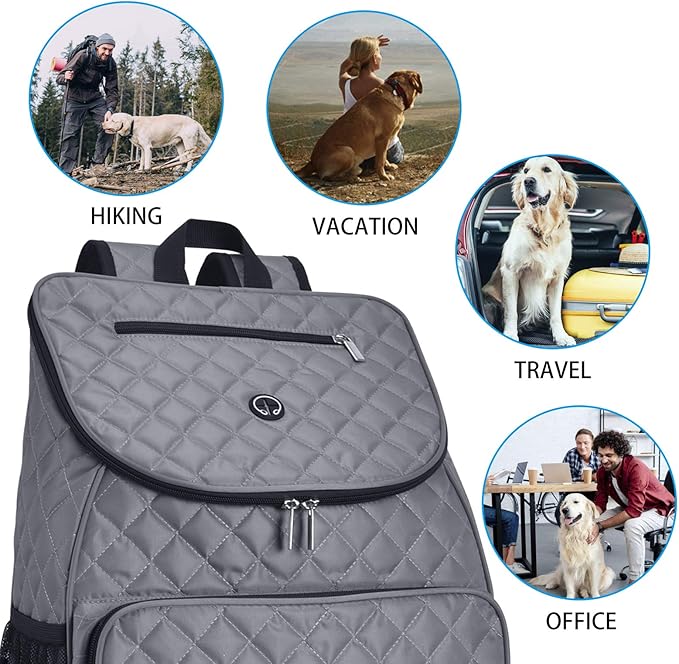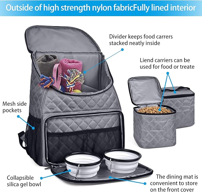 - SUFFICIENT REASONABLE SPACE FOR USE- 3 separate carrying bags for carrying food,which are insulated and very convenient to clean,ensuring a clean and hygienic food environment for pets; The main compartment allows you to pack and organize skillfully And use pet items.