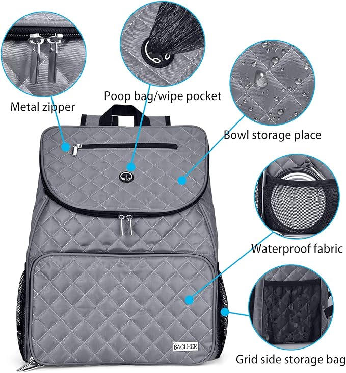 BAGLHER Dog Travel Bag,Airline Approved Pet Supplies Backpack, Dog Travel Backpack with 2 Silicone Collapsible Bowls and 2 Food Baskets.