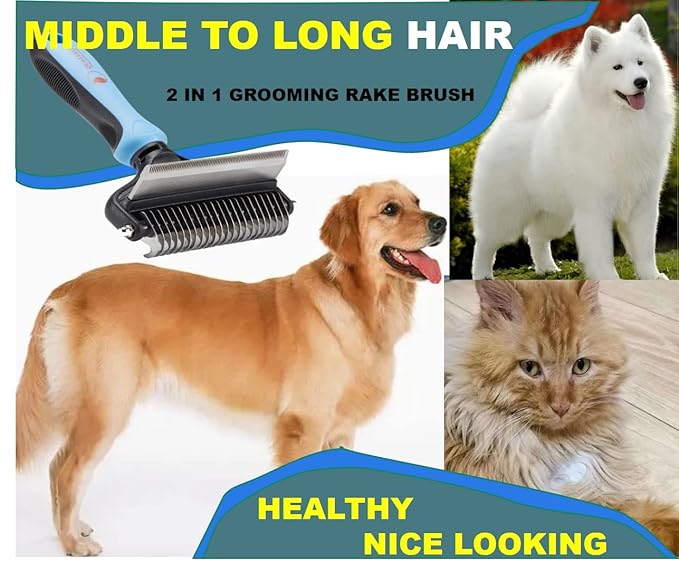 - 👍✅【UNDERCOAT RAKE special for LONG HAIRED PETS】Cats or dogs, medium to large size with shaggy, long, thick coat. Powerful, safe, efficient, and effective.