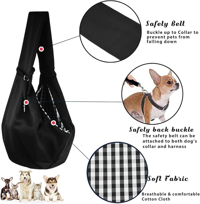 Dog and Cat Sling Carrier Little Pet Carrier Shoulder Crossbody Pet Slings for Outdoor Traveling Subway (Black)