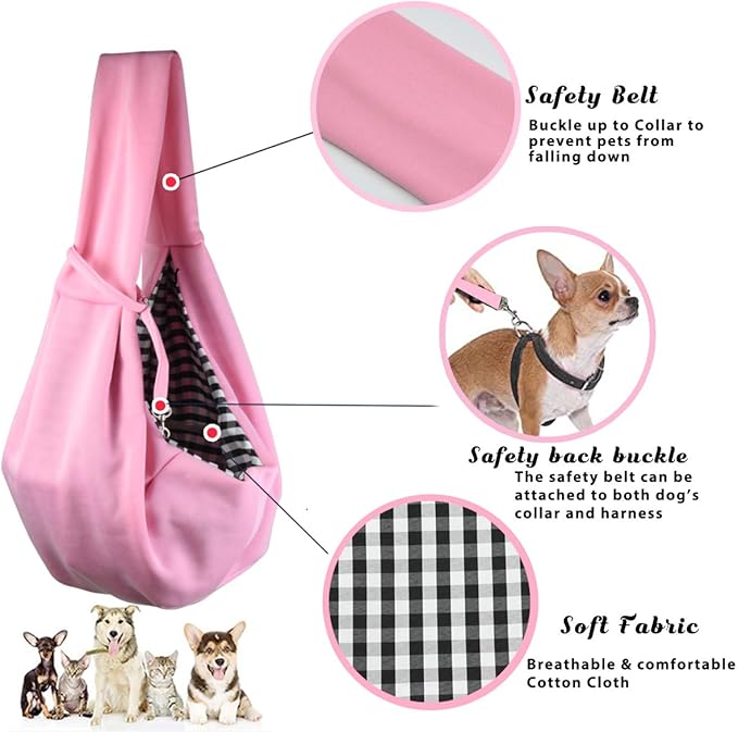 Dog and Cat Sling Carrier Little Pet Carrier Shoulder Crossbody Pet Slings for Outdoor Traveling Subway (Pink)
